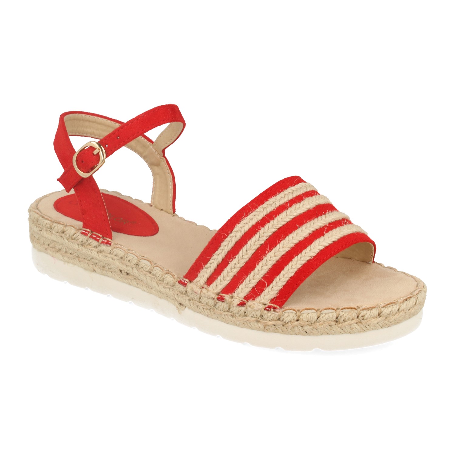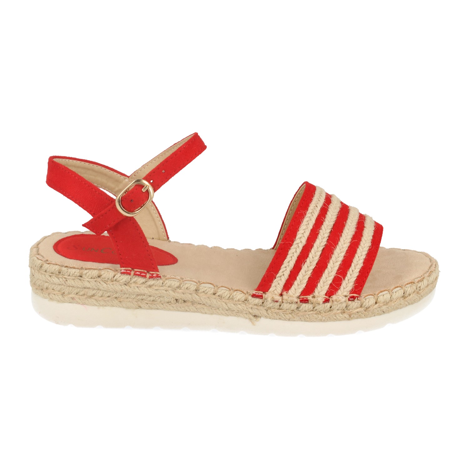 Sandalia con Mini Cuña Estilo Ankle Strap Pala con Tiras de Yute y Cierre de Hebilla
