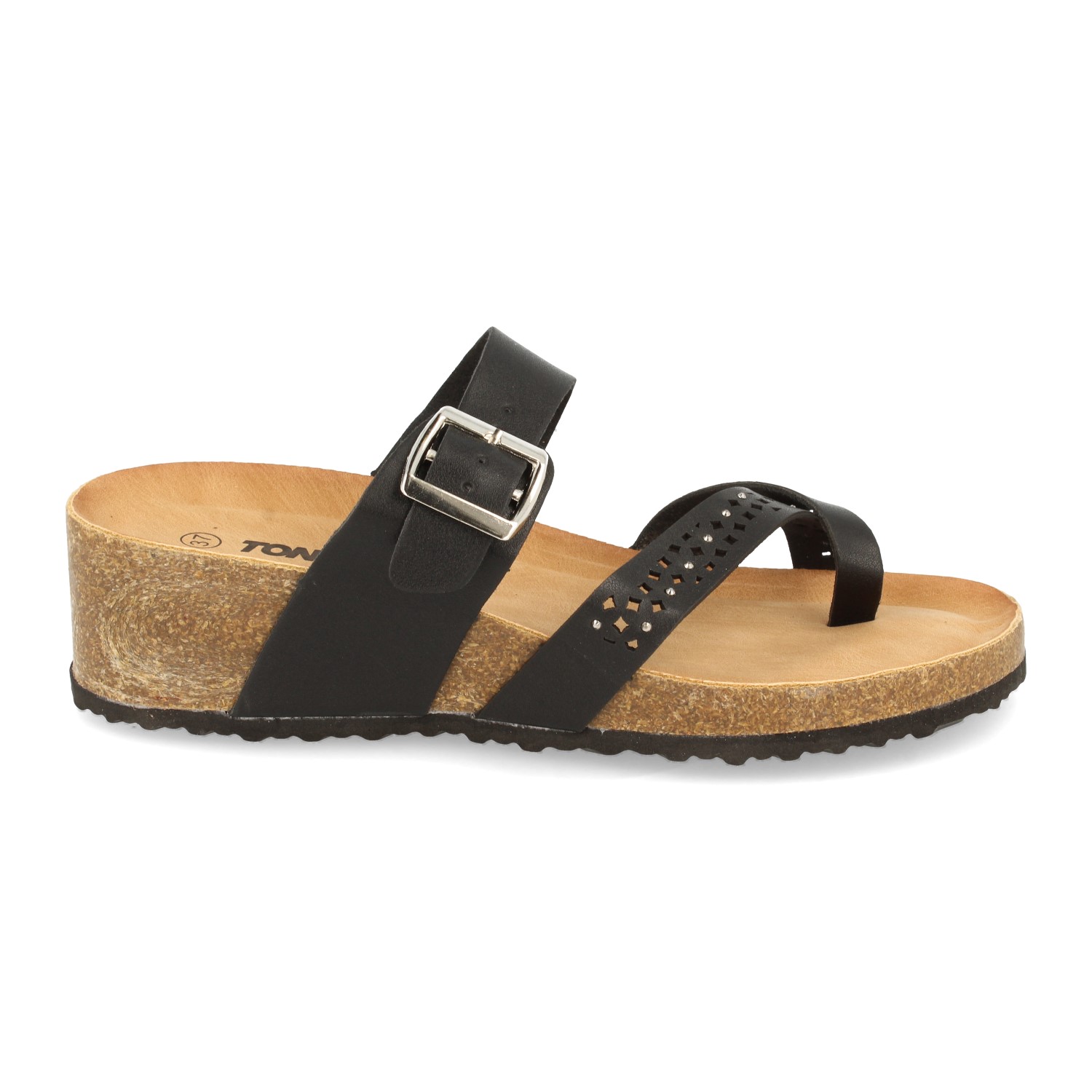 Sandalia de Cuña para Mujer con Planta Cómoda Anatomica con Calados y Adornos Metalizados Cierre de Hebilla