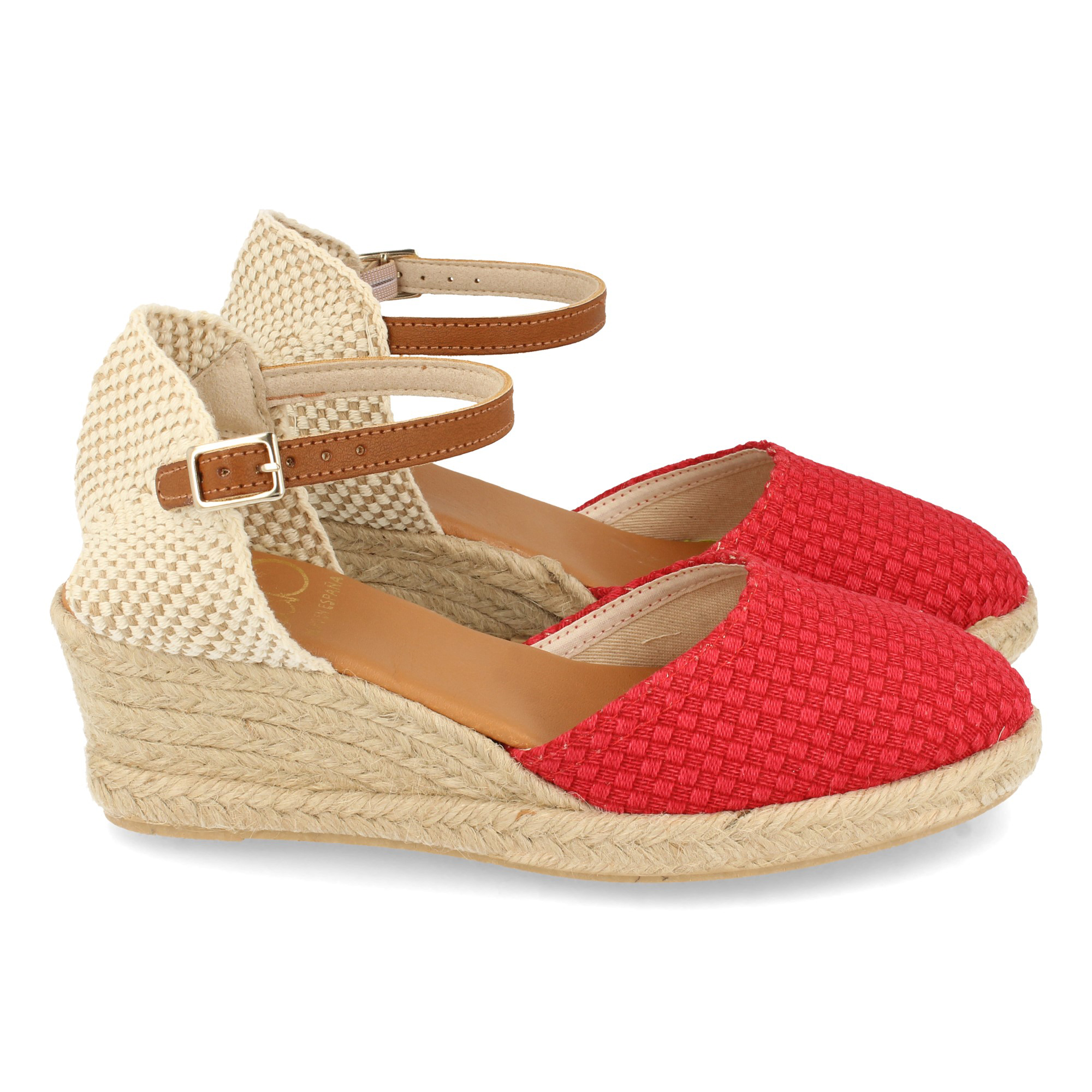 Alpargata de Cuña para Mujer Sandalia Cerrada estilo Valenciana Hecha en España Pala Textil Yute 4 cuerdas Cierre de Hebilla