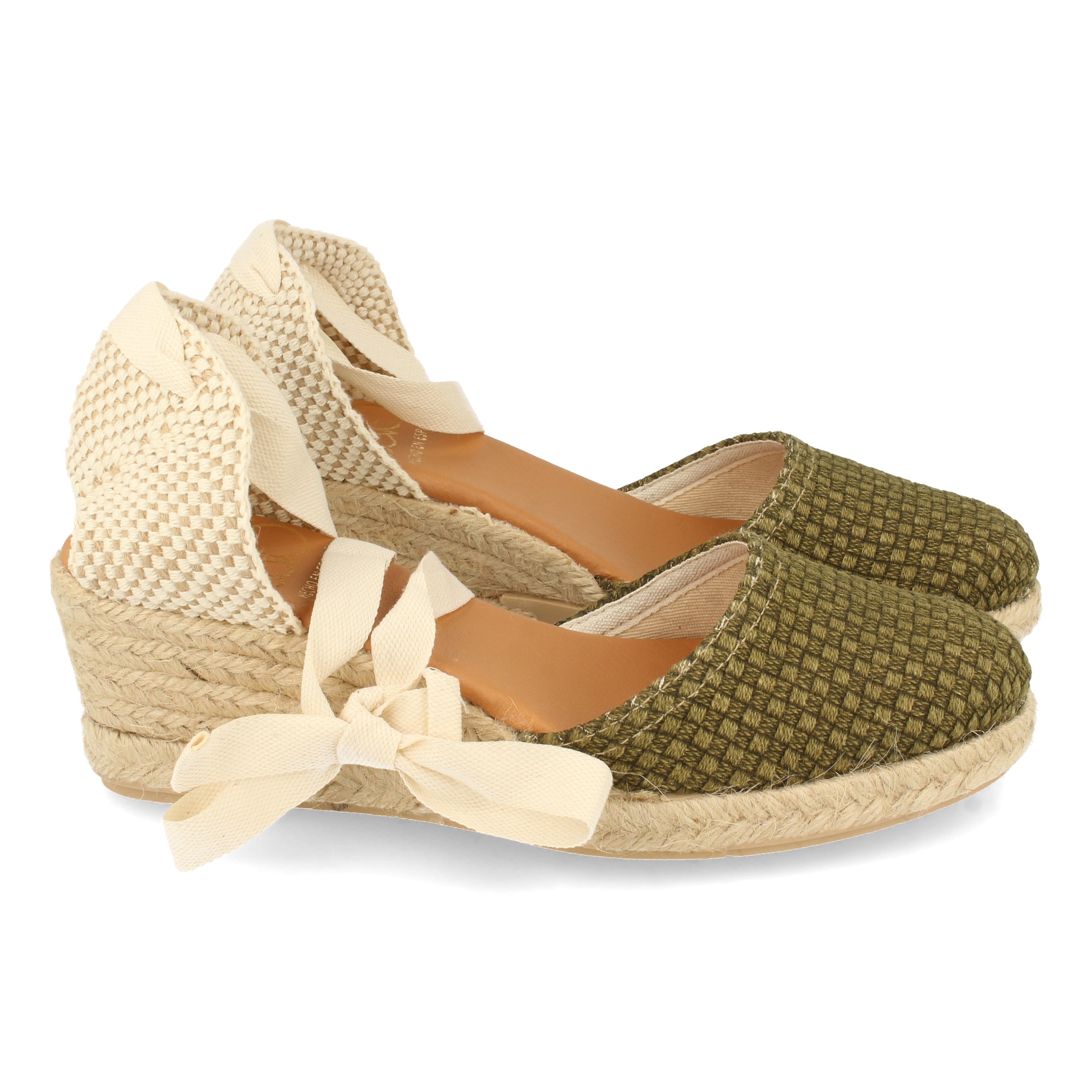 Sandalia de Cuña para Mujer Cómodas con Pala Cerrada de Marca y Fabricacion Nacional Forrada de Yute y Cierre de Cordones