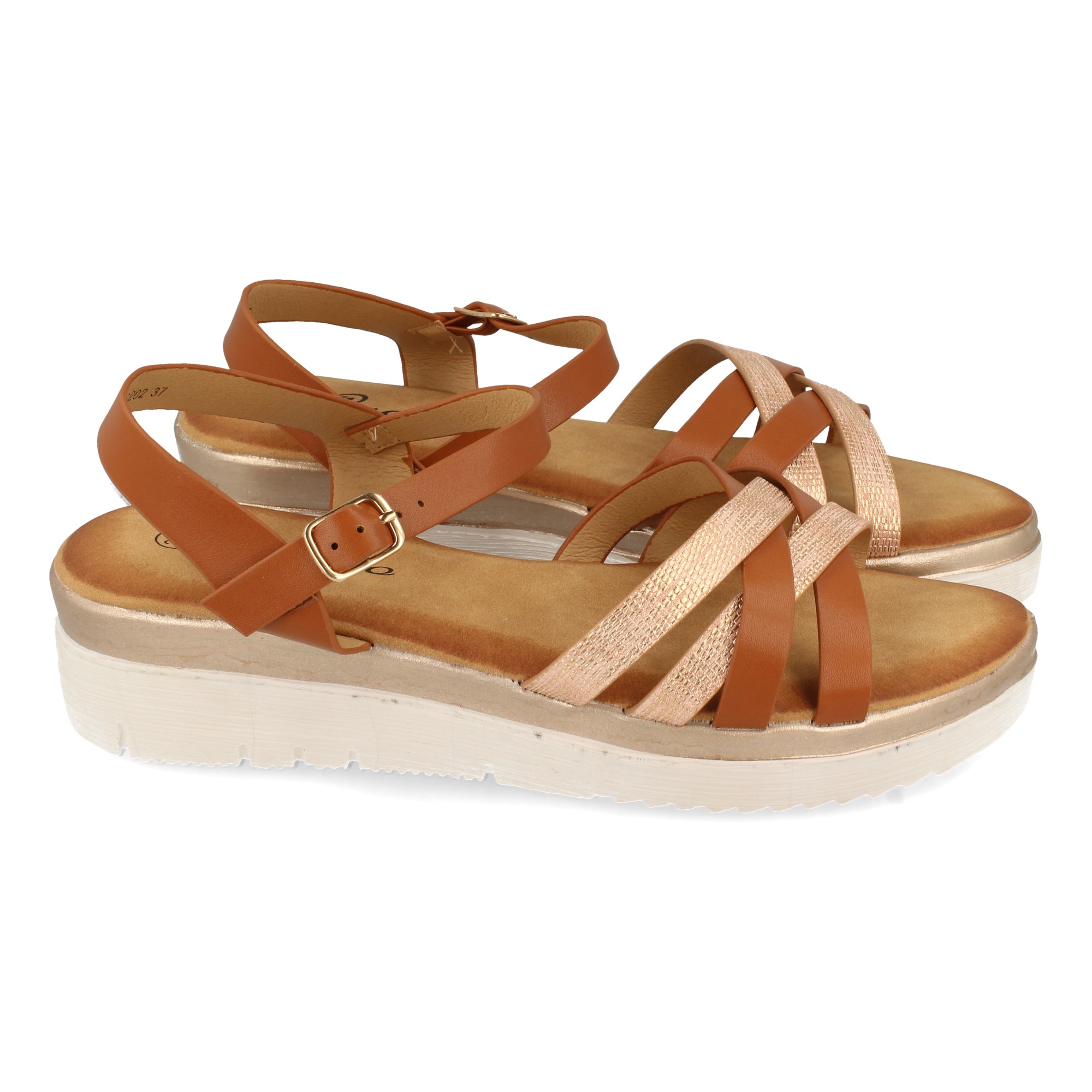Sandalia Cuña para Mujer Cómodas con Palas Cruzadas Multicolor y Cierre de Hebilla
