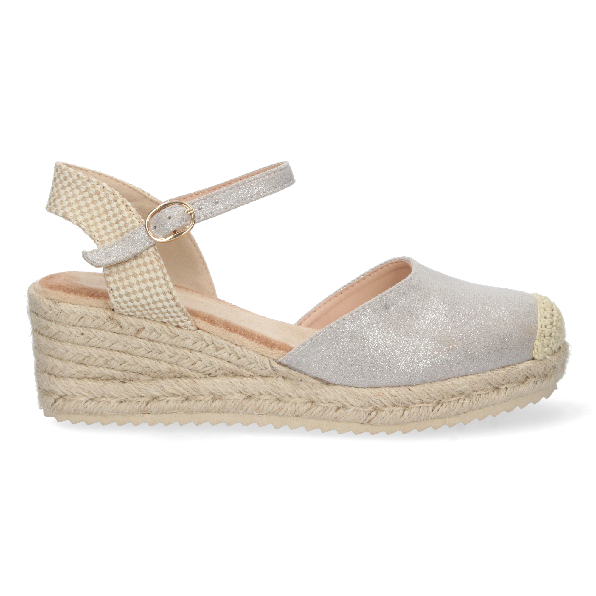 Sandalia de Cuña para Mujer Forrado de Yute Pala Cerrada y Cierre de Hebilla
