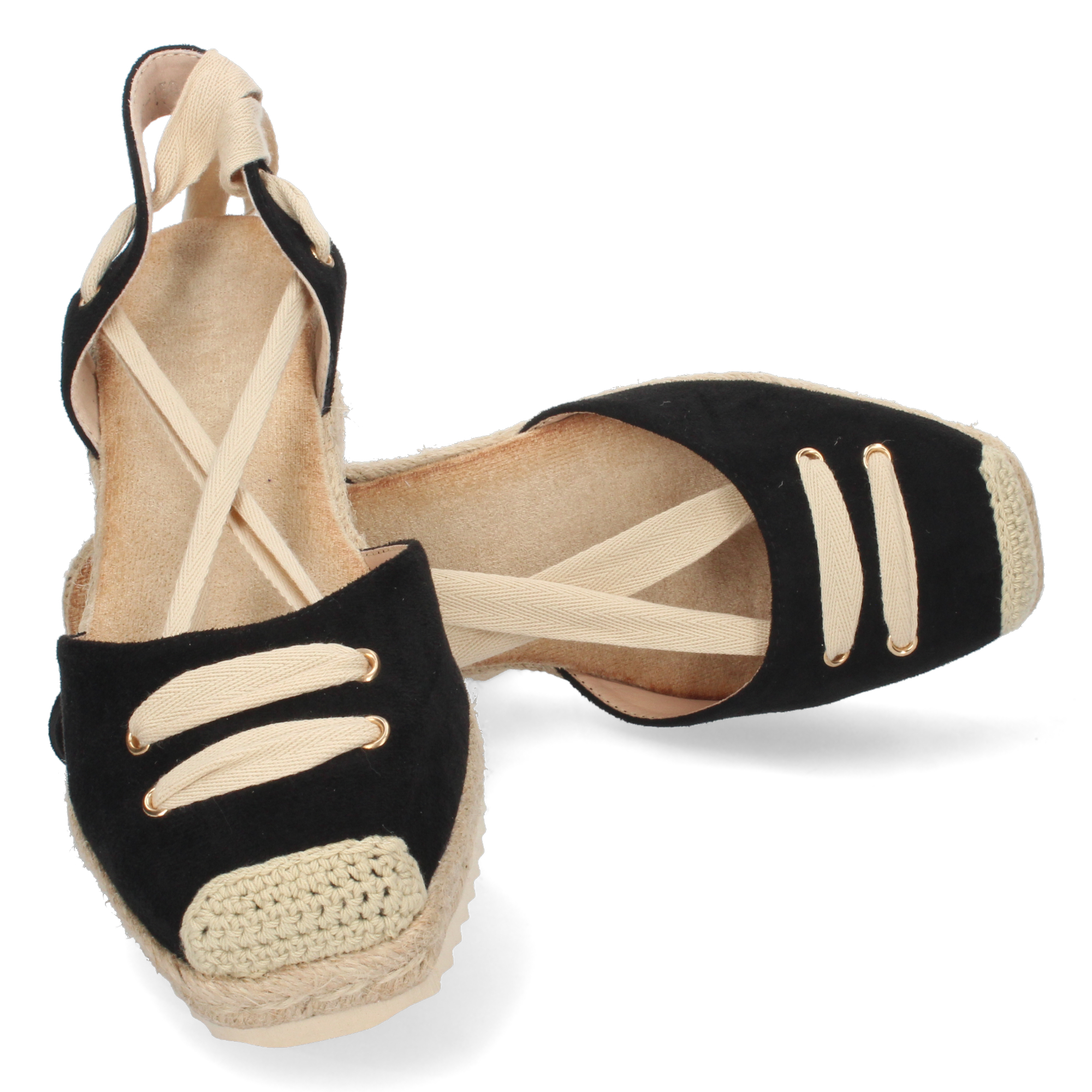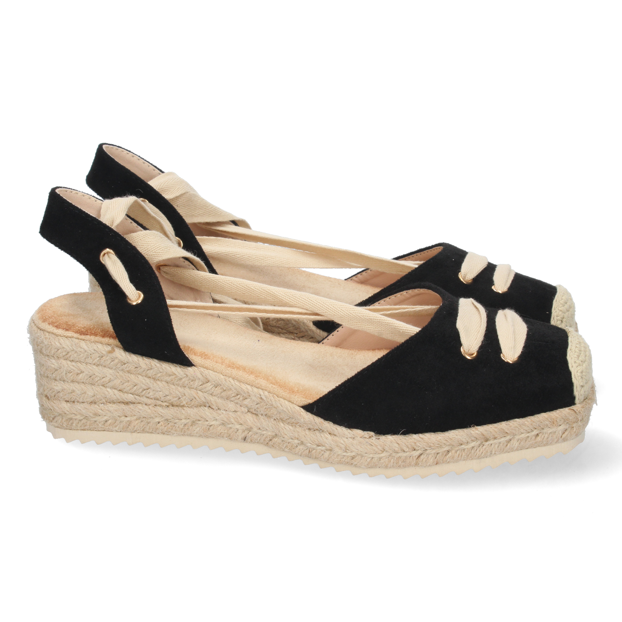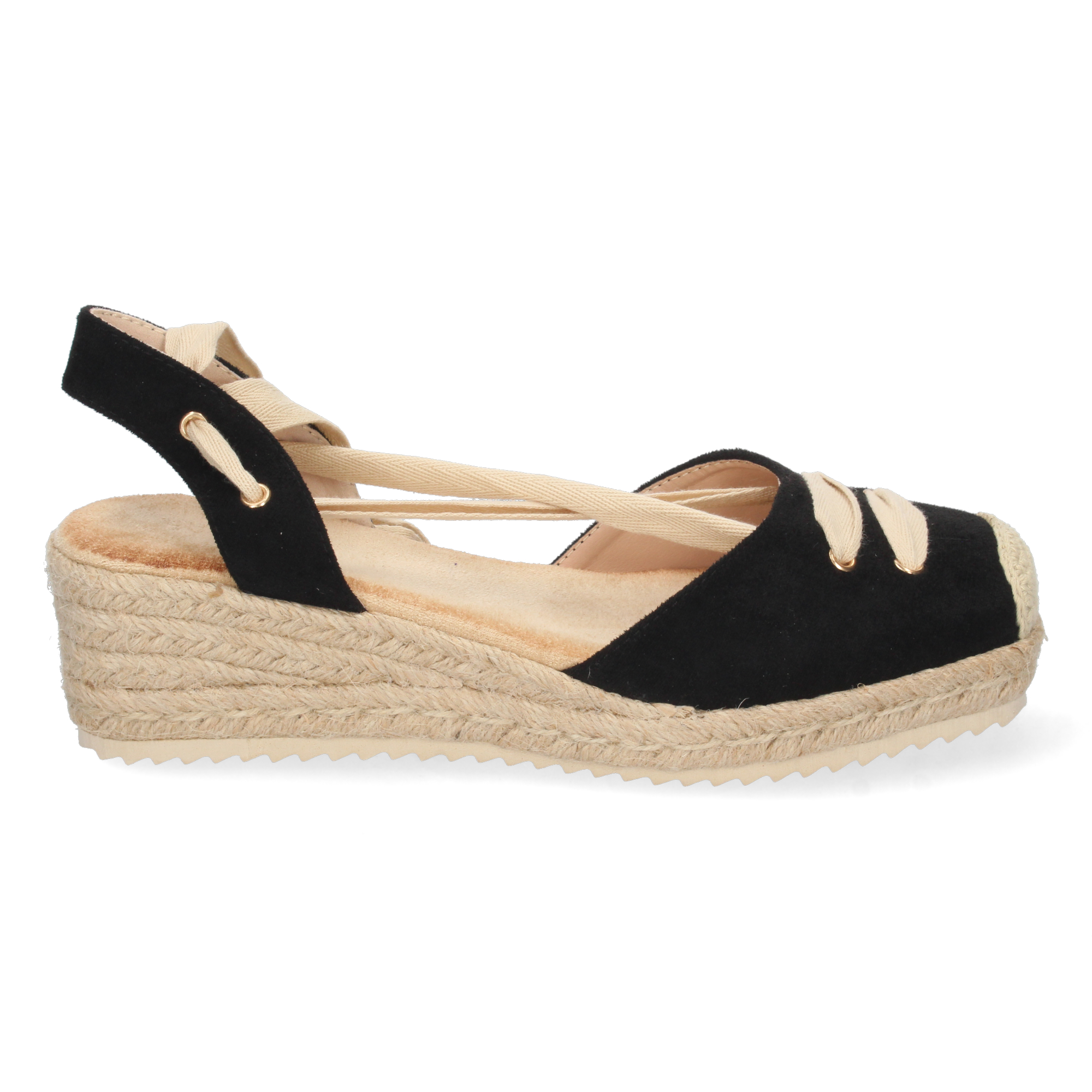 Sandalia de Cuña para Mujer Forrada de Yute con Pala Cerrada y Cierre de Cordones