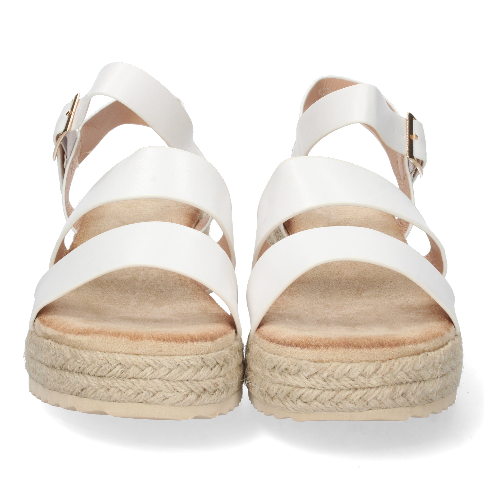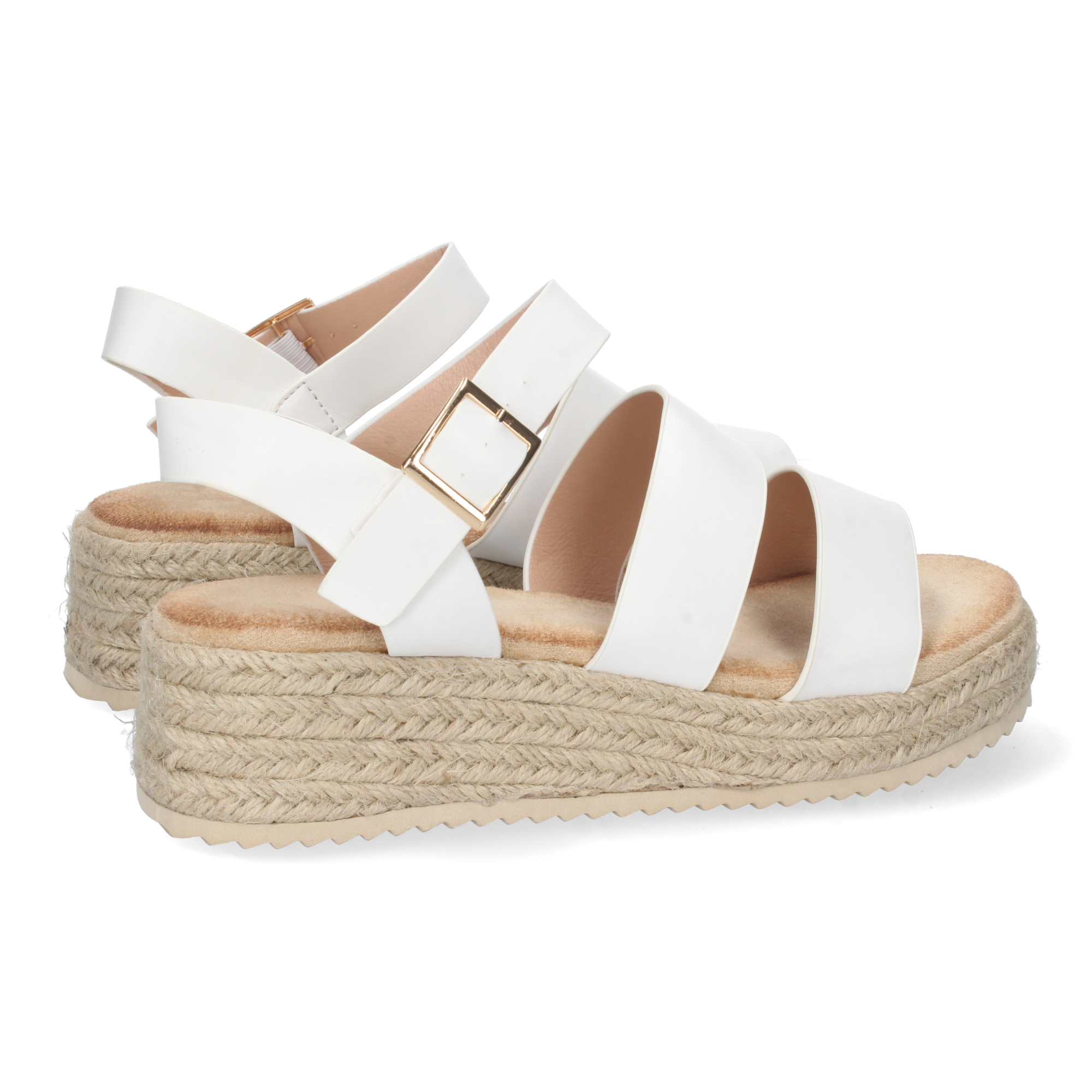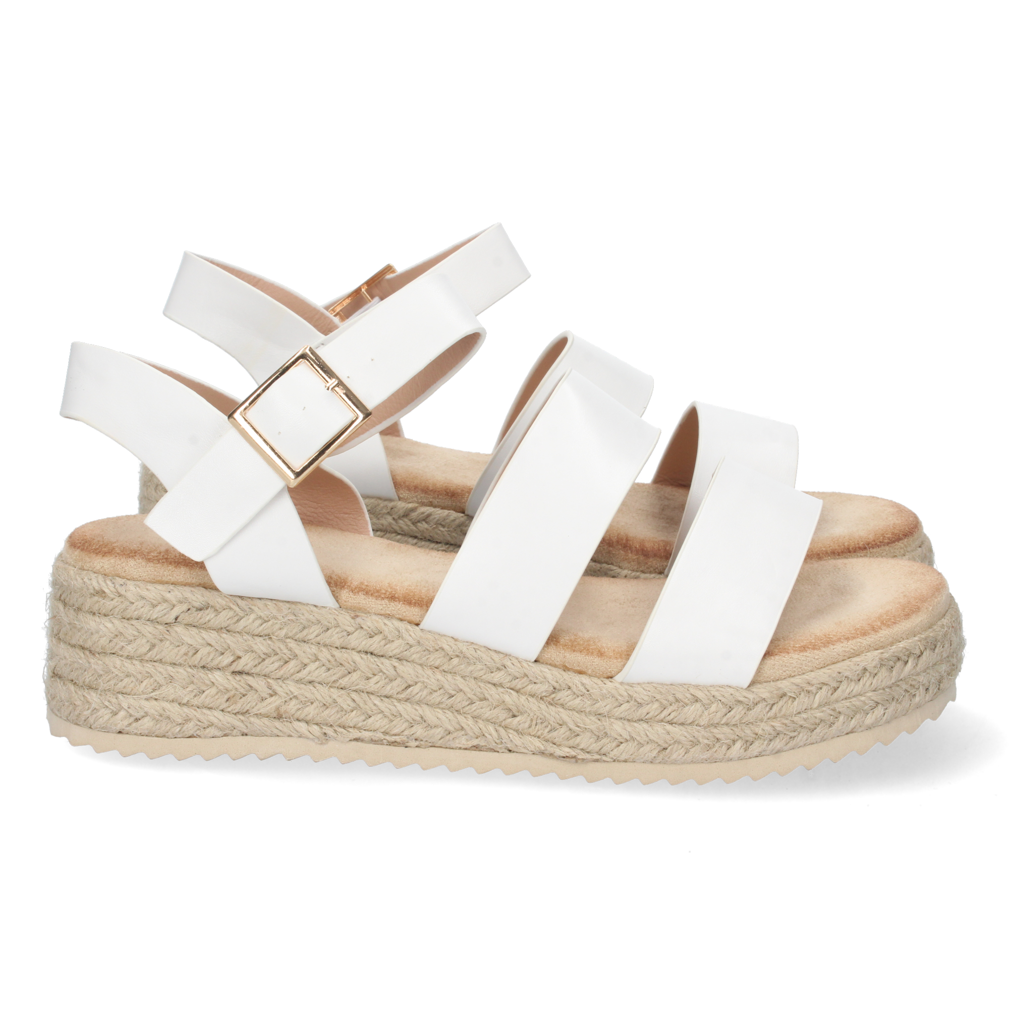 Sandalia de Plataforma para Mujer Forrada de Yute con Estampado Multicolor y Cierre de Hebilla