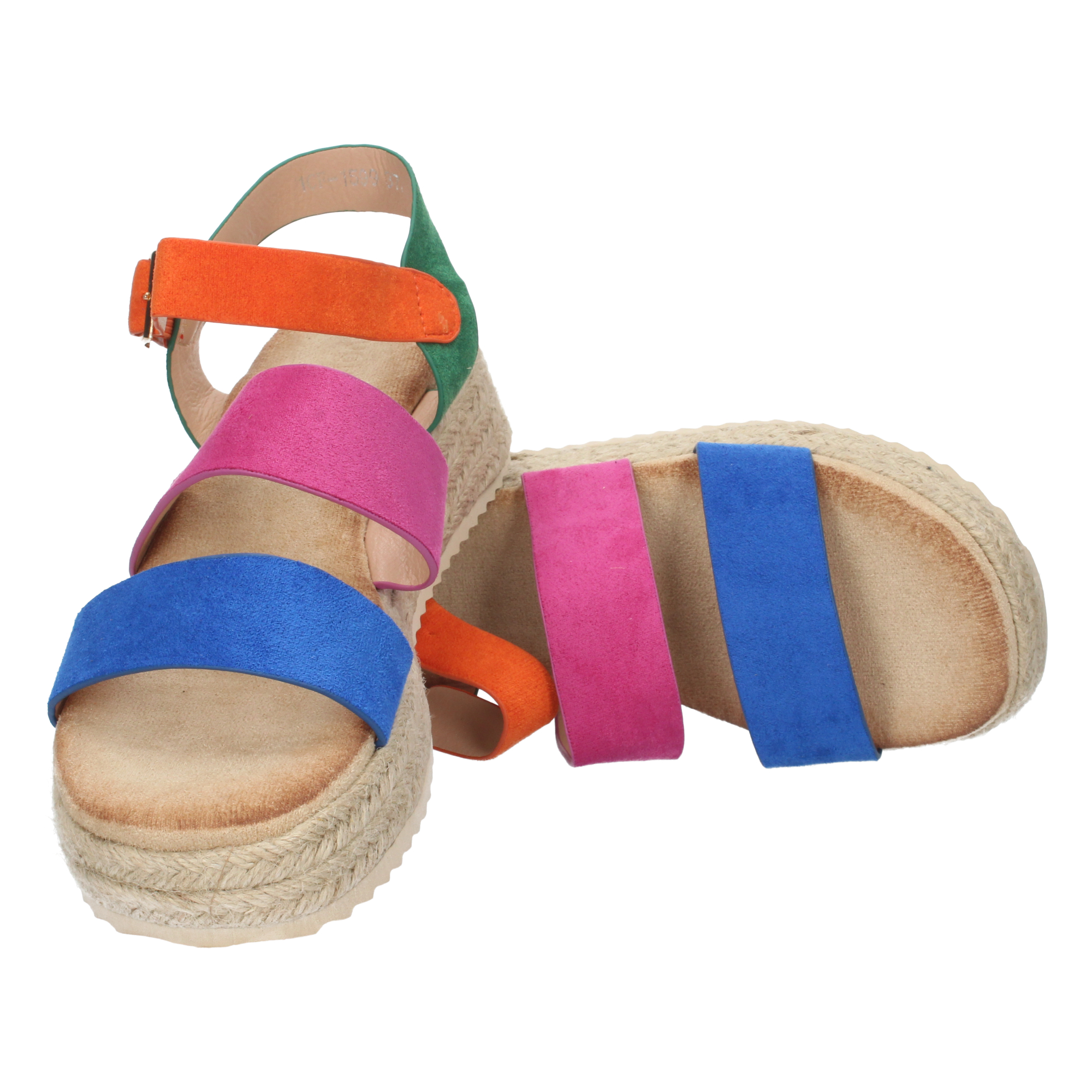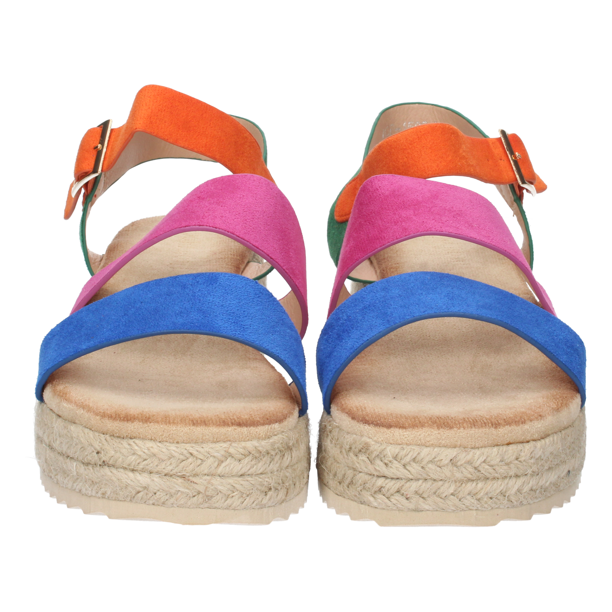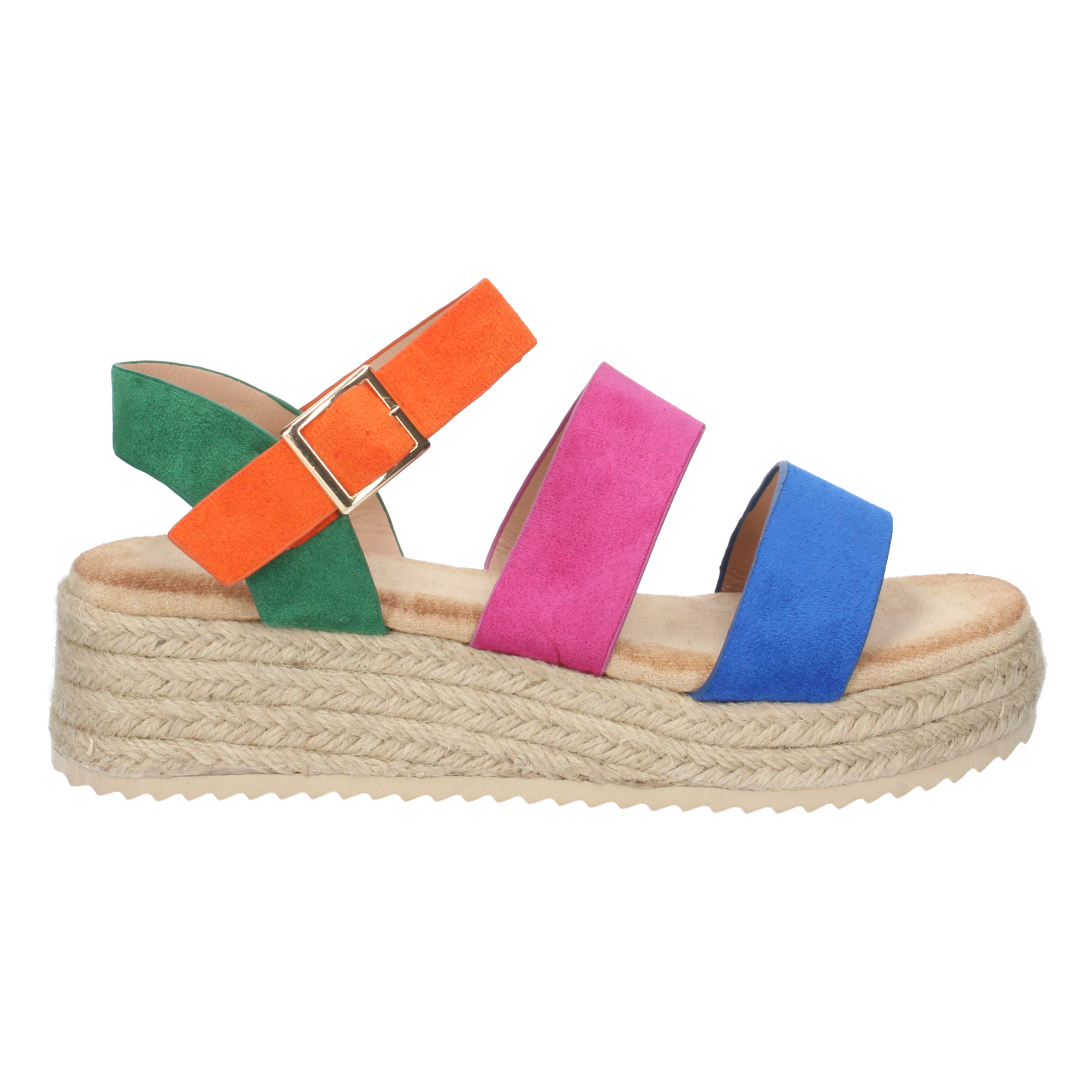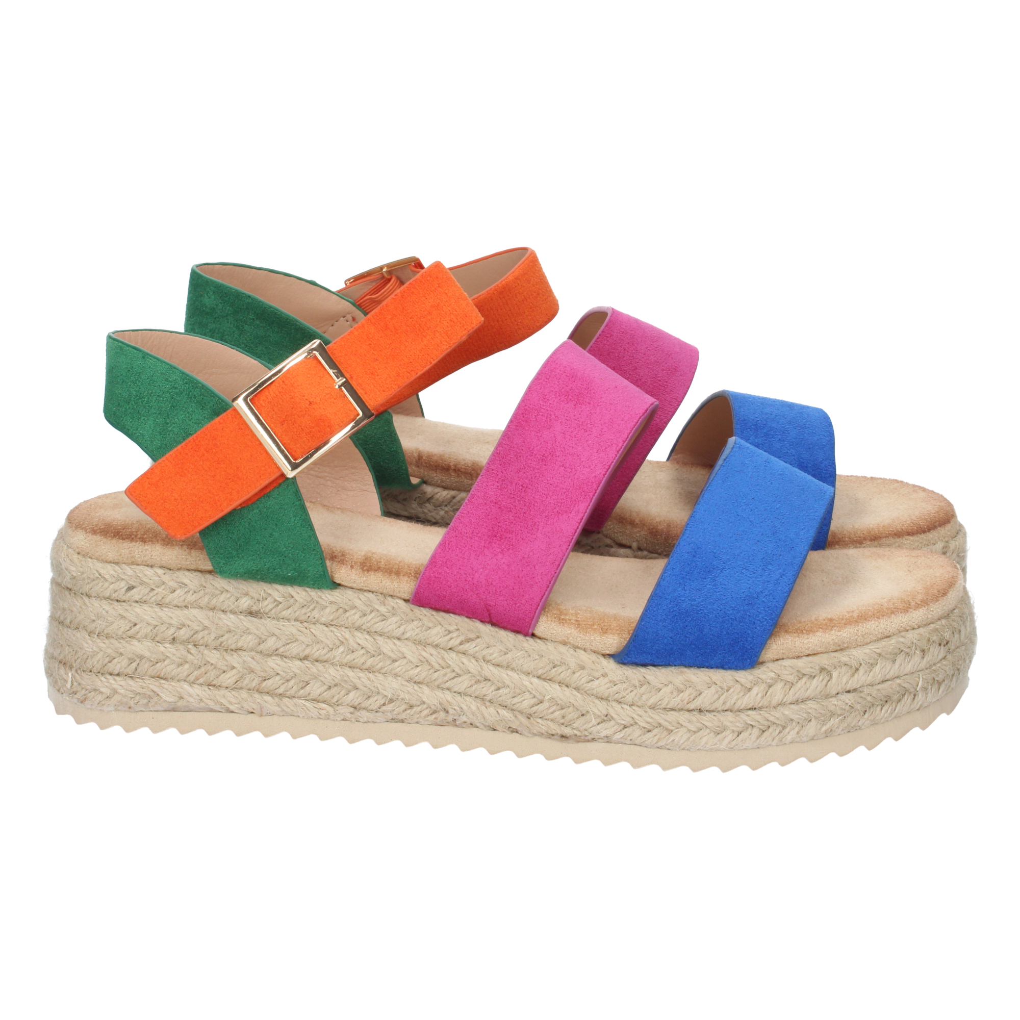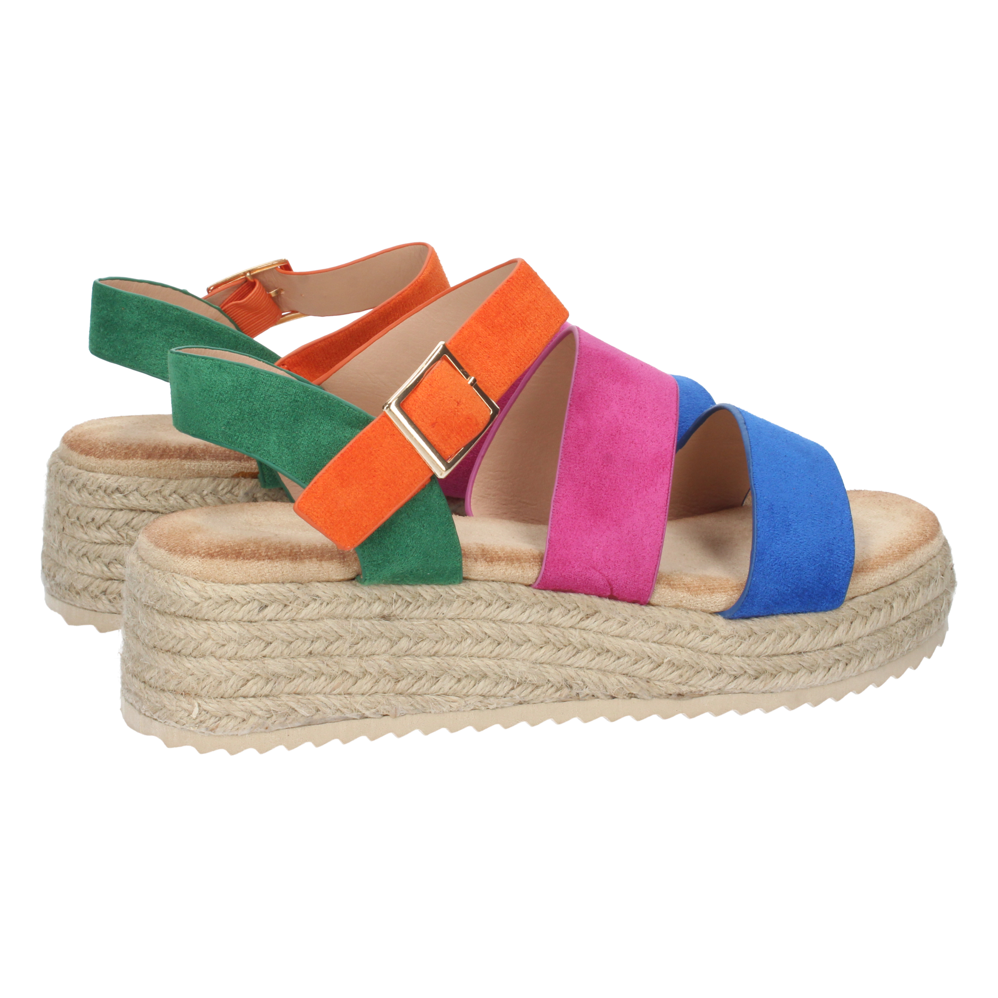 Sandalia de Plataforma para Mujer Forrada de Yute con Estampado Multicolor y Cierre de Hebilla