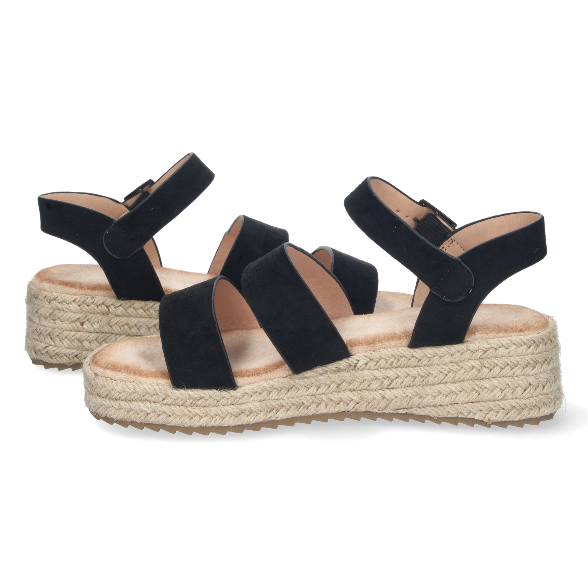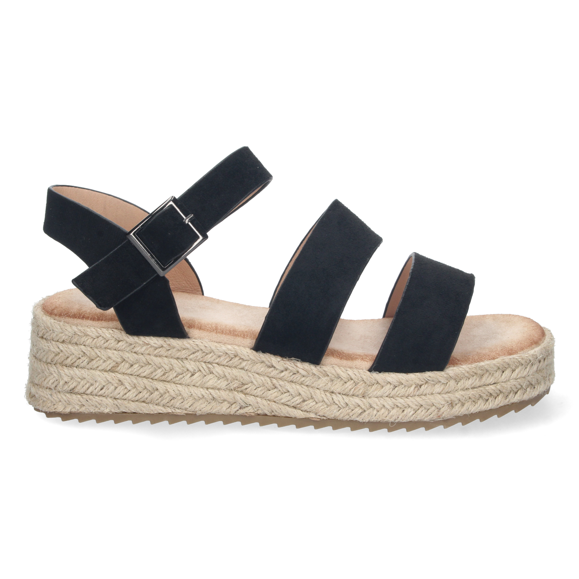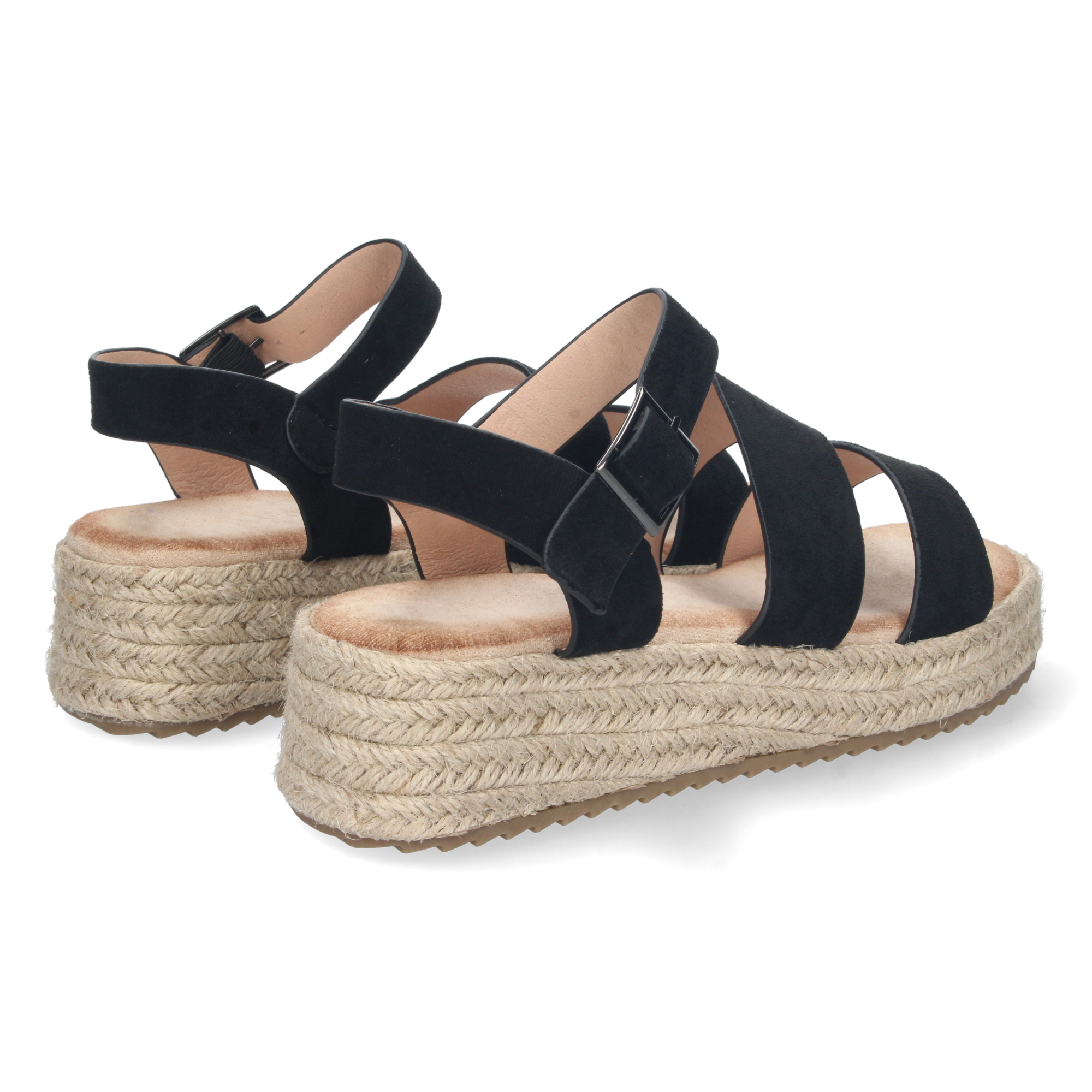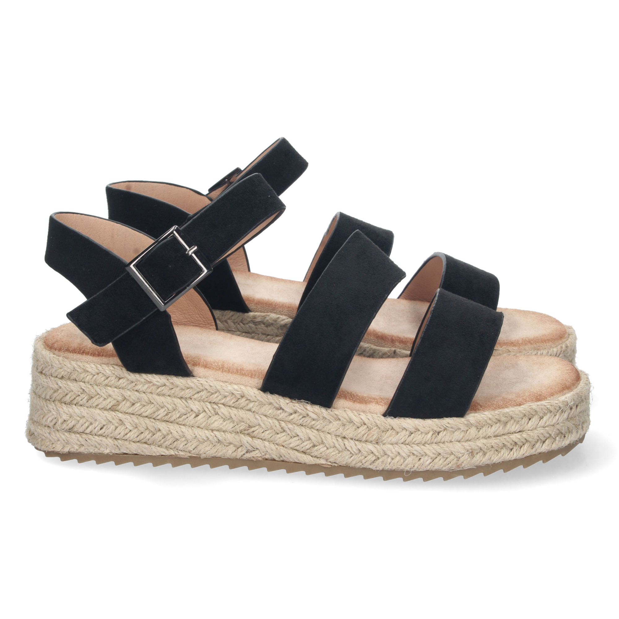 Sandalia de Plataforma para Mujer Forrada de Yute con Estampado Multicolor y Cierre de Hebilla