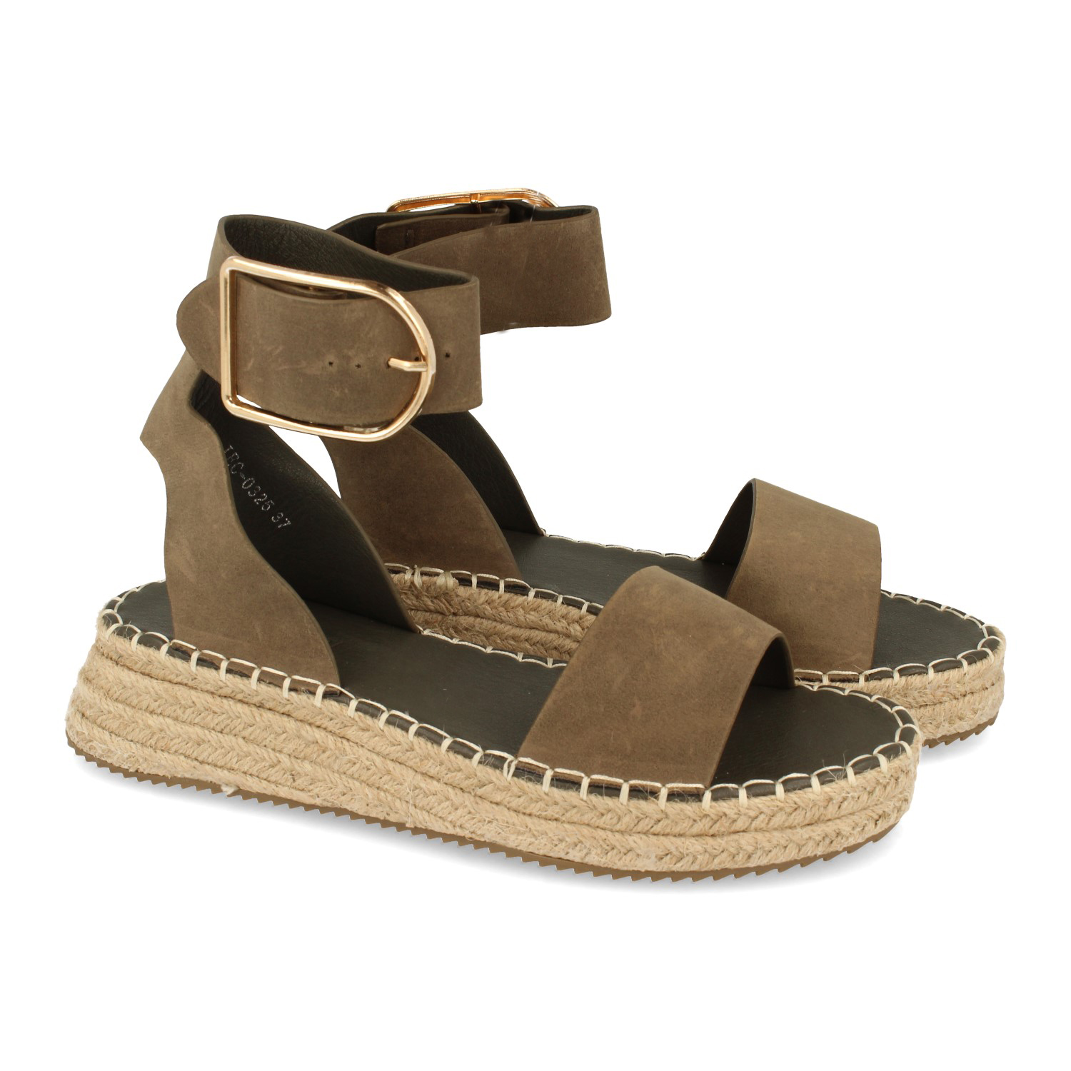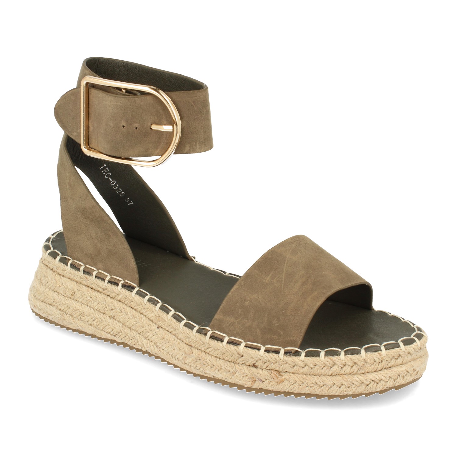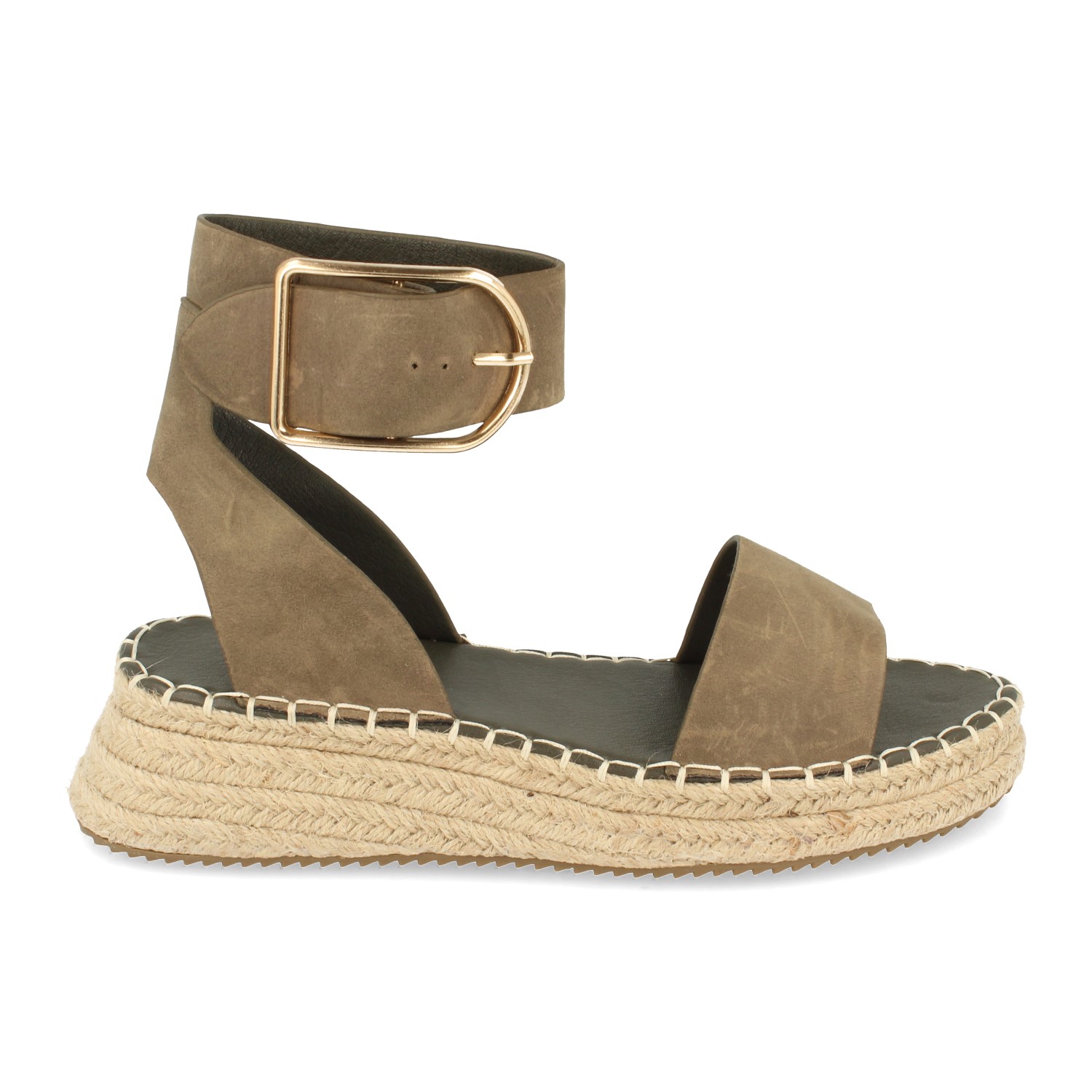 Sandalia para Mujer con Yute Pala Fina Talon Abierto y Cierre de Hebilla en el Tobillo